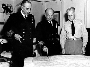 Andrewes was appointed naval aide-de-camp to the King in July 1947, and he was promoted rear admiral in January 1948. He was promoted vice admiral in December 1950, and made commander of the 5th cruiser squadron and flag officer second in command Far East Fleet, flying his flag in the cruiser Belfast. During the Korean War he commanded the British, Commonwealth, French and Dutch Naval Forces, flying his flag in the aircraft carrier Theseus. Later his command included eighty ships of the United States Navy. Admiral Andrewes’ squadron supported the landings at Inchon and at the end of this operation, General Douglas MacArthur, the US commander in chief of United Nations forces, signalled him: “My heartfelt felicitations on the splendid conduct of the fleet under your command.” Andrewes was highly regarded by the United States military and received two US awards: a Silver Star in 1951 and Commander of the Legion of Merit in 1953.