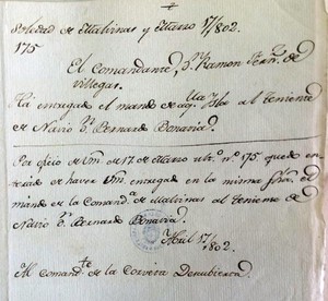Following peace being signed with Britain, he was sent in the brig Paloma to the River Plate, where he was appointed in command of the corvette Descubierta and sent to the Spanish establishment in Puerto de la Soledad (Port Louis)to act as comandante gobernador, taking over from Ramón Fernández on 31 March 1802 and serving in this post until 21 July 1803 when he was relieved by Antonio LEAL. Bonavía returned to Puerto de la Soledad for a second term as governor, taking over from Leal in mid March 1804 until relieved, again by Leal, on 21 March 1805. Bonavía returned to Puerto de la Soledad for a third term as governor, taking over from Leal on 20 March 1806, serving there until the end of August 1808, when he was relieved by Gerardo BONDAS. In June 1807 provisions in the settlement almost ran out, new supplies only arriving on the day the last daily rations, consisting of six ounces of bread and some salt meat per person, had been issued. As Bonavía pointed out to the viceroy, the timely arrival was most fortunate as it was the height of winter when temperatures were extremely low. He added that the settlement now had supplies of flour for six months, dry pulses for fourteen months, dried beef and pork and wine also for six months. On 16 August 1808 Bonavía reported that there were 215 cattle of all ages in the settlement, mostly kept in corrals, and 828 horses of all ages, some of which were tame and presumably broken. This extended third term may have been caused by the British attacks on Buenos Aires and Montevideo in 1807. It also made Bonavía the Spanish governor with the longest accumulated period in this post. During his third term as governor Bonavía wrote to Viceroy Rafael, Marqués de Sobre Monte, on 6 July 1807 to assure him that he was prepared to defend the settlement and resist any invasion. He was also willing to accept a delayed replacement. This eventually occurred on 17 April 1808 when he was relieved by Bondas in command of the brig Nuestra Señora de Belén. During his first term as governor Bonavía was promoted capitán de fragata on 5 October 1802, serving in that rank until his retirement in 1811.
