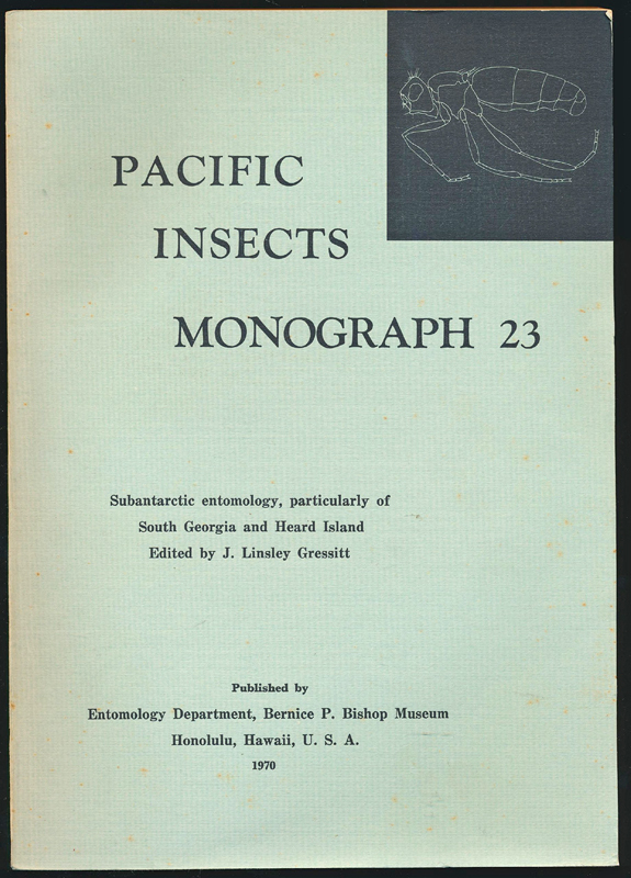 In the 1970 Pacific Insects Monograph 23, Dr J Lindsey Gressitt had counted a total of 149 terrestrial arthropods documented from South Georgia collections by Clagg and others. Of these, 41 were Free-living Insecta, 55 were Free-living other arthropods and 53 were Parasitic Acarina and Insecta .