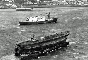 (2) From Corlett's letter to The Times November 1967: 'The first iron built ocean-going steam ship and the first such ship to be entirely driven by a propeller was the Great Britain, designed and launched by Isambard Brunel. This, the forefather of all modern ships is lying a beached hulk in the Falkland Islands at the moment. The Cutty Sark has rightly been preserved at Greenwich, and HMS Victory at Portsmouth. Historically the Great Britain has an equal claim to fame and yet nothing has been done to document the hulk, let alone recover it and preserve for record. May I make a plea that the authorities should at least document and photograph and fully record this wreck, and at best do something to recover the ship and place her on display as one of the very few really historic ships still in existence.'