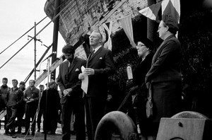 In July 2005, he attended a 'relaunch' of the SS Great Britain Project at Bristol, which celebrated the completion of a major restoration phase. He died in his chair at home in Port e Vullen on the Isle of Man on 8 August 2005: his wife had died in 2002.