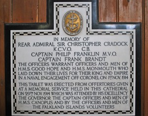 A service was held in Christ Church Cathedral, Stanley on 22 November 1914 and a memorial tablet was erected in the Cathedral paid for by donations from the offertories.