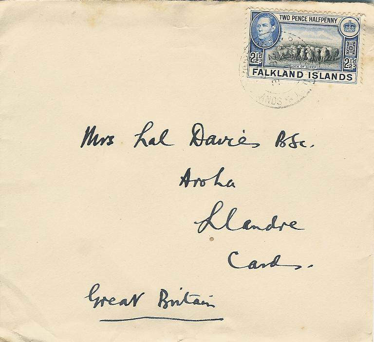 On 20 November 1937 Davies arrived in the Falklands in the SS Lafonia, at the invitation of Governor HENNIKER HEATON, and with the support of some of the farm managers. He travelled extensively, visiting almost all the farms, making a comprehensive survey of the grasslands of the Falkland Islands and he conducted re-seeding and fertilisation experiments. Davies worked with David Weir the highly capable government stock inspector seconded from the New Zealand Department of Agriculture, for three years.