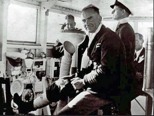 Some ideas for different designs had already been considered when the Irish yachtsman, Conor O'BRIEN arrived in the Islands in 1924 in his yacht Saoirse with a beautifully painted insignia on the stern. Henniker Heaton enquired who the artist was and when he discovered it was O'Brien himself, asked if he would design a new crest for the Falklands. O'Brien produced a drawing of a shield with a sea-lion and ship, which after approval by councillors, the College of Arms and the British government, was officially adopted in 1925. It remained in use until after World War II, but was found too difficult to reproduce properly and in 1948 the current crest showing a sheep over a representation of the ship Desire was introduced. The 1925 crest however, was retained by the FIDF and is still used by them today.