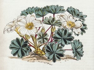 He admired 'the pride of the Falklands' Oxalis enneaphylla (Scurvy Grass), covering the banks at Berkeley Sound 'with a mantle of snowy white' during the spring month of November. He saw this plant only in the Falklands, whereas Calceolaria fothergillii, (Lady's Slipper), Viola maculata, (Yellow Violet), and Hebe elleptica, (Native Boxwood), were also widespread in Tierra del Fuego off South America. A celery growing along the shoreline, Apium australe, (Wild Celery), was enjoyed as a vegetable by Ross's men. The natural spinach, a species of Atriplex, was another culinary favourite. The settlers and especially the gauchos used Myrtus mummularia, (Teaberry), as a substitute for tea.