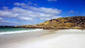 Despite the onset of winter with snow and heavy frost Hooker found more flowering plants than he had expected. He conjectured that the absence of tree cover was due to the low rounded hills with their broad shallow-bottomed valleys providing no protection from prevailing winds. He climbed Mounts Vernet and Lowe, crossed the sand hills between Ports William and Jackson (now Stanley Harbour), and reached the beaches at low tide. He notes the 'streams of stones' in the valley bottoms which every traveller since Pernetty had also observed. (Darwin wrote at length about them.)