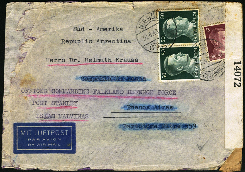 Krauss finally departed the Falklands on 22 July 1947 onboard the SS Fitzroy bound for Montevideo. As a German subject he was issued with an emergency certificate and was recorded as being 5’ 10” tall with blue eyes and grey hair.