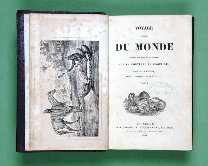 Rene-Primevere Lesson; Voyage autour du monde, entrepris par ordre du gouvernement sur la Corvette La Coquille, Pourrat frères, Paris, 1838-1839