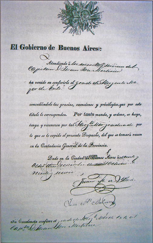 Argentine commandant, was French, but little is known about him. His date of birth is not on record, and his Christian names are also in doubt. The historian Paul GROUSSAC, also of French origin, refers to him as Juan (or Jean) Mestivier. As is the Argentine custom, his Christian names have been hispanicized in Argentine literature. He is first mentioned campaigning with the 7th cavalry regiment near Bahia Blanca (against the Indians) as a first lieutenant. In 1828 he was promoted captain, and apparently brevet major on 28 December 1829. He married a local lady, Gertrudis Sanchez.
