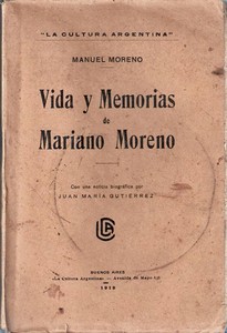 Argentine diplomat, was born on 31 January 1782. Like his elder brother, Mariano, he was educated at the Real Colegio de San Carlos, and is said to have commanded a unit resisting the British invasions of Buenos Aires in 1806 and 1807. When Mariano Moreno became secretary to the Primera Junta, the governing council which succeeded Spanish colonial rule following the Revolution of 25 May 1810, Manuel became his assistant. In 1811 Manuel Moreno accompanied his brother, who had been sent to London. However, Mariano died during the voyage, showing all the symptoms of poisoning, and was buried at sea. He may well have been a victim of his political enemies. Manuel Moreno went on to Britain, and lived there for two years, writing a book about his late brother. He then returned to Buenos Aires, only to fall foul of the powers that be and to leave as an exile for the United States. There he studied medicine at the University of Maryland in Baltimore.