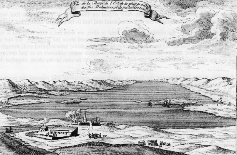 When Bougainville himself returned to wind up the settlement in March 1767 in the Boudeuse, at the beginning of his celebrated circumnavigation, he had nothing but praise for de Nerville. All was well at Fort St Louis, where the settlement was beginning to take shape. Two fine stone houses had been built for the governor and the clerk cum storekeeper, while the remaining settlers lived in cottages whose walls were made of turf. Timber from the Strait of Magellan had enabled three shops and two schooners to be built, suitable for surveying the coast. Grain from Europe had naturalised, while domestic animals had multiplied. Of the 135 inhabitants all were healthy and in good spirits. In December 1766 the arrival of the British warship Jason (30 guns), Captain John McBRIDE, had surprised the French and had led to an exchange of letters between de Nerville and the British naval officer who was in charge of the newly established settlement at Port Egmont, in the west Falklands.