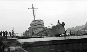 The KING has been graciously pleased to approve the award of the Victoria Cross for daring and valour in the attack on the German Naval Base at St. Nazaire. ‘For great gallantry in the attack on St Nazaire. He commanded a force of small, unprotected ships in an attack on a heavily defended port and led H.M.S. Campbeltown in under intense fire from short range weapons at point blank range. Though the main object of the expedition had been accomplished in the beaching of Campbeltown, he remained on the spot conducting operations, evacuating men from Campbeltown and dealing with strong points and close-range weapons while exposed to heavy fire for one hour and sixteen minutes, and did not withdraw till it was certain that his ship could be of no use in rescuing any of the Commando Troops who were still ashore. That his Motor Gun Boat, now full of dead and wounded, should have survived and should have been able to withdraw through an intense barrage of close-range fire was almost a miracle.’ (Ryder’s medal is now held by the Imperial War Museum).