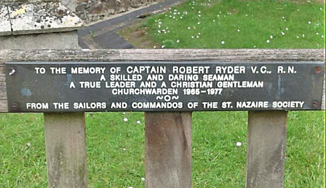 To the memory of Captain Robert Ryder VC RN; a skilled and daring seaman; a true leader and a Christian Gentleman. Churchwarden 1965-1977.