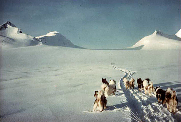 Dalglish later went on to have a very distinguished naval career - becoming the Surgeon Captain onboard HMY Britannia, and before retirement he was Deputy Director of Naval Medical Services. He was awarded the Polar Medal with Bar. Dalglish and Spivey became firm friends and together they undertook two long winter sledging survey expeditions with a team of nine huskies. The first was around George VI Sound, from September to December 1949 while the second lasted 56 days and covered a further 500 miles of coastline.