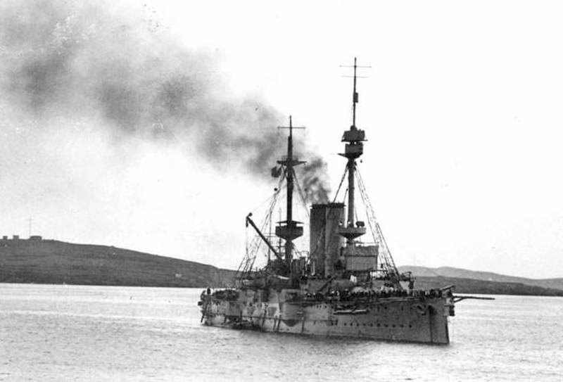 Coaling was incomplete when the following morning lookouts on Sapper's Hill sighted the approaching German ships and alerted Sturdee who calmly finished dressing and took breakfast. The vanguard of the German squadron comprised the armoured cruiser Gneisenau and the light cruiser Nurnberg and their immediate reaction to receiving a salvo from the concealed Canopus has intrigued naval strategists ever since.