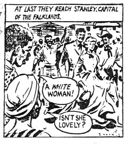 was one of the very first white women to go to the Falkland Islands - in an unofficial capacity - and the natives went quite wild about her. They insisted on crowning her with tufts of grass and they declared her a queen. They remembered Queen Victoria and they qualified the statement by proclaiming her Queen of their hearts.