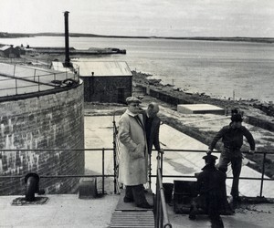 The Company and the colony found overcoming the arrears of maintenance and capital projects caused by isolation and shortage of materials during the war difficult. These problems were not helped by the ill-conceived erection of a freezer at Ajax Bay funded by the Colonial Development Corporation which Young bitterly opposed, particularly for its siting which created difficulties in transporting live sheep. This resulted in a difficult relationship between Young and Governor CLIFFORD. Young was a strong and very effective director of FIC, overcoming disagreements over farming policies between different family interests. He formed a strong relationship with John COBB, the racing motorist and welcomed his appointment as chairman in 1951. He tried hard to persuade Cobb to abandon his attempt on the water speed record at Loch Ness only a fortnight after his appointment but to no avail. Cobb's death in the attempt dismayed Young who was appointed to succeed to the chairmanship, a position he held until retirement in 1958. Although never achieving his goal of breaking into the Latin-American market for shipping, Young did the Company and colony a great service when, following years of problems with cargo delays and losses through pilferage at Montevideo he introduced a charter service of vessels between the UK and Stanley with cargo outward and wool homeward. This transformed shipping results and reduced the subsidy for working RMS Darwin.